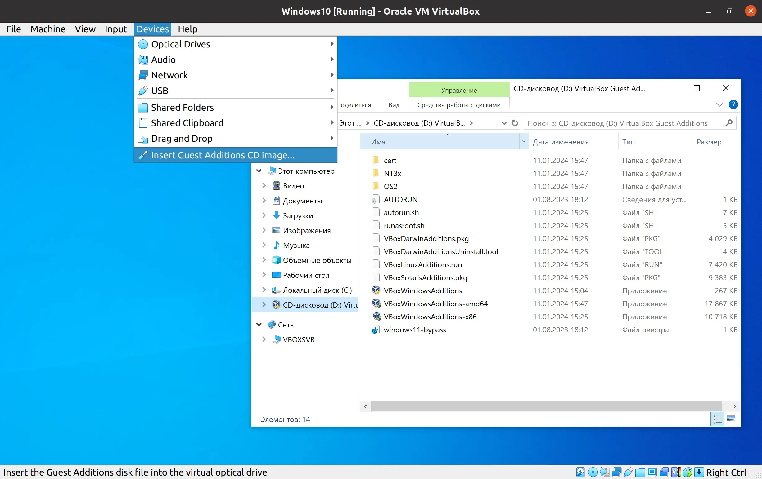 Установка Guest Additions