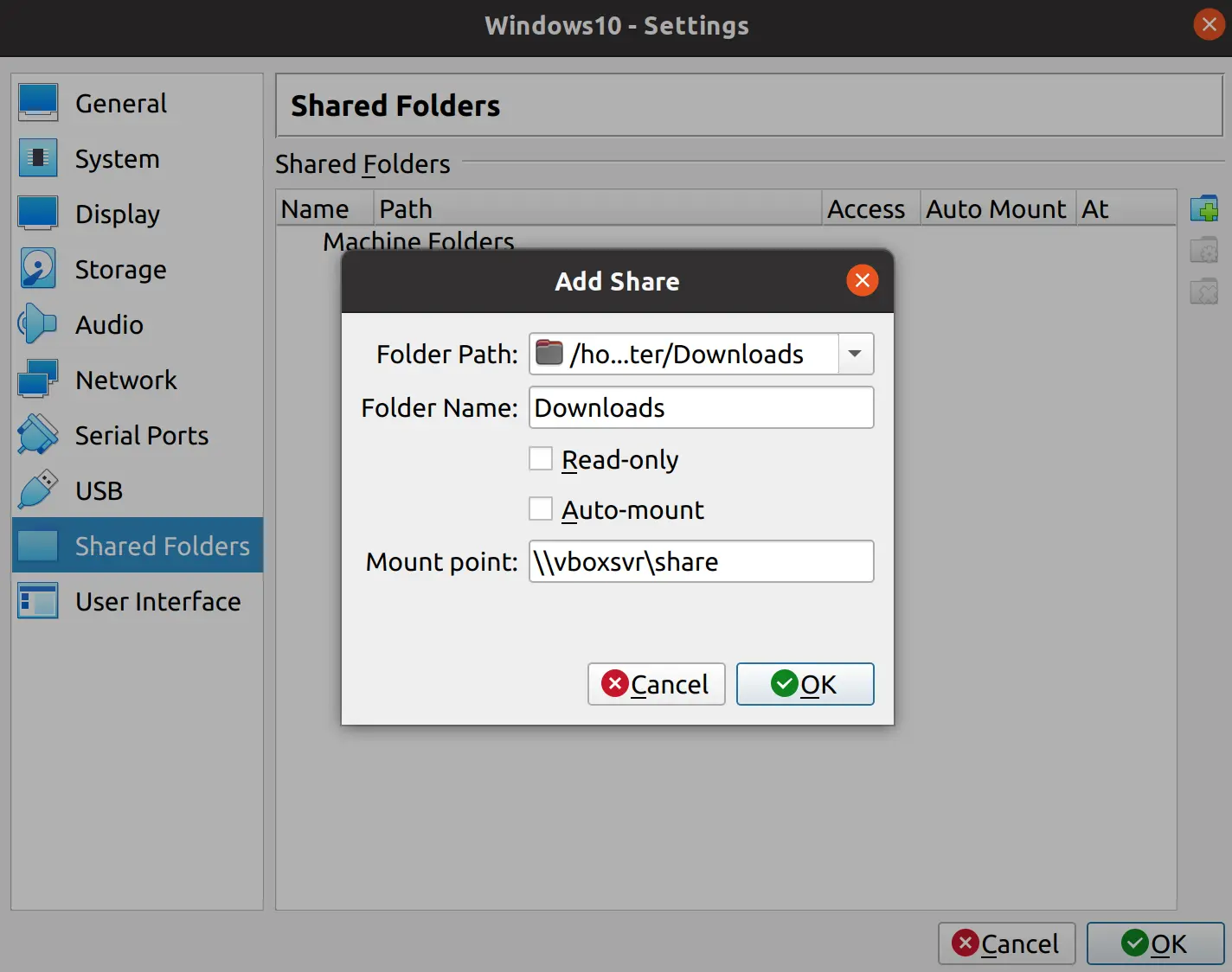 Настройка Shared Folders