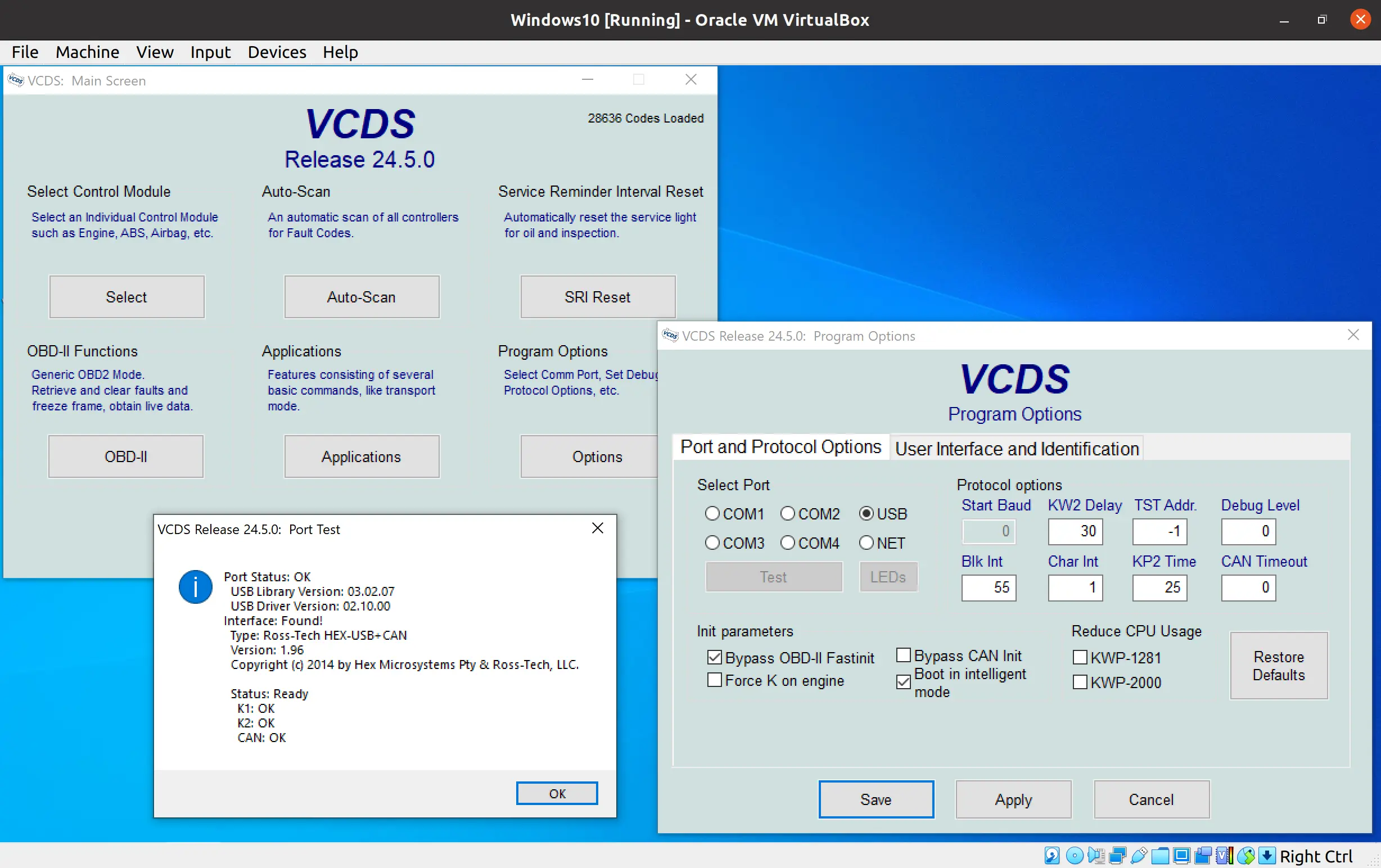 Тестирование VCDS на VirtualBox